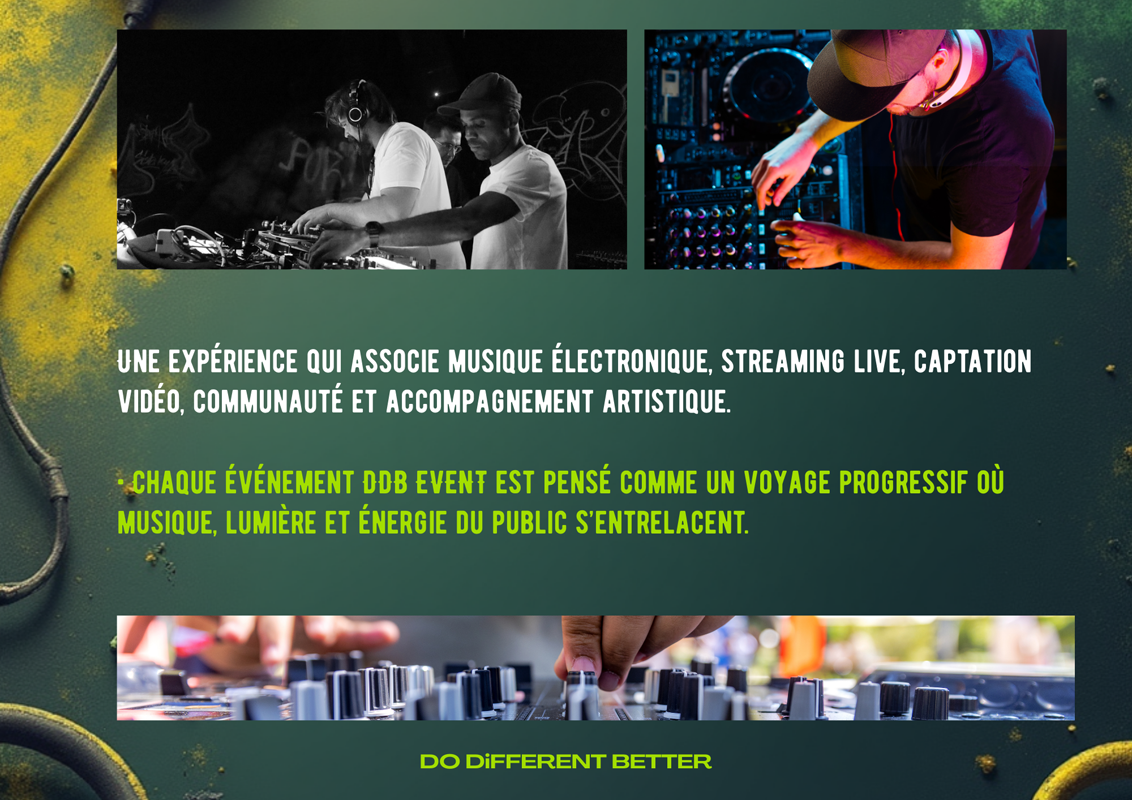 DDB EVENT intervient pour des événements privés, des soirées d’entreprise, des afterworks, des bars et des formats publics : avec une sélection musicale cohérente, des transitions propres, une lecture de salle, et un dispositif technique fiable.